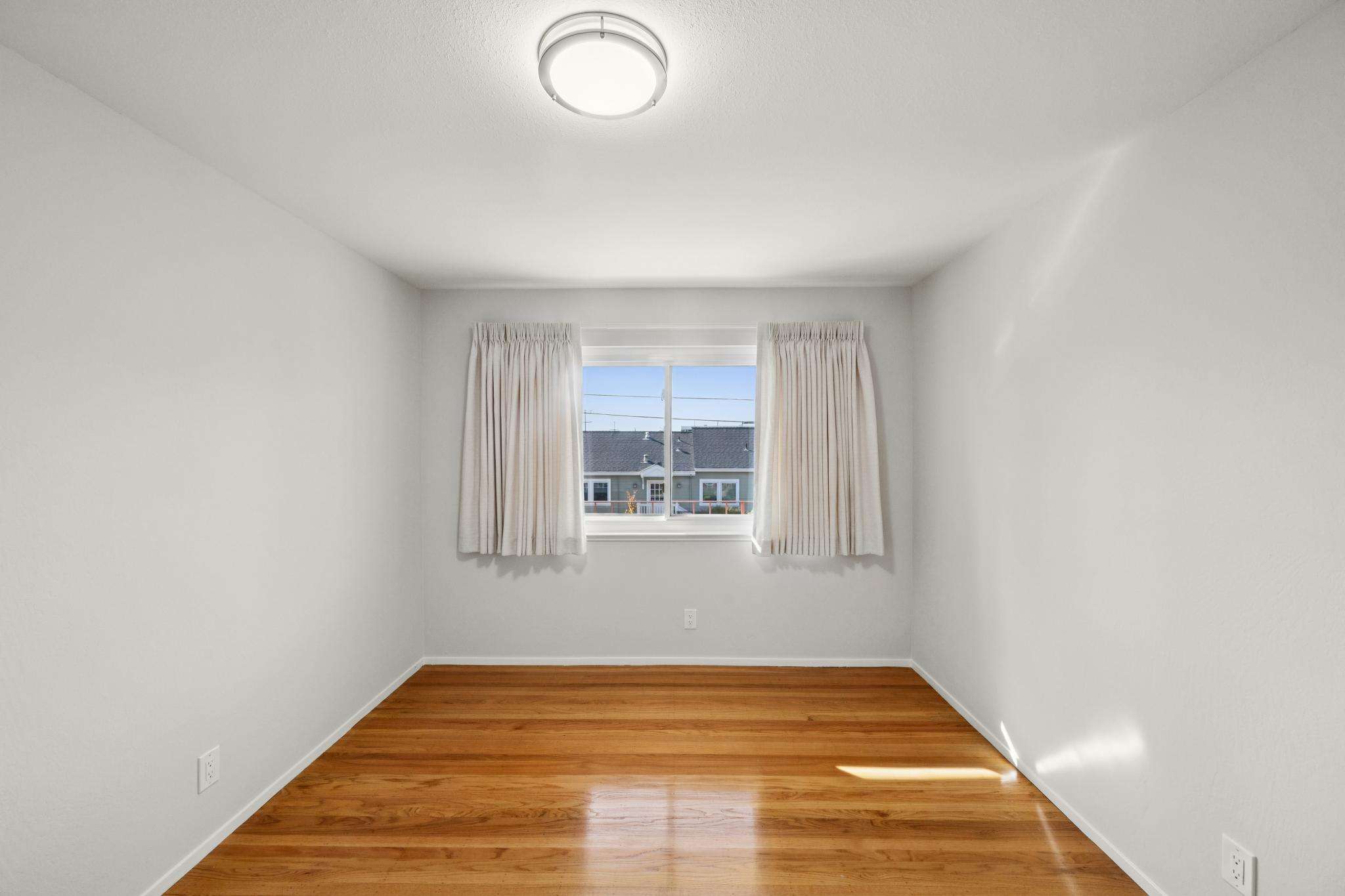 #2731 McGee Avenue is an expansive unit with an open floor plan that occupies the entire second floor. Often called “the owner’s unit,” it has hardwood floors, a private laundry area, an updated kitchen, and a wide front deck. The rear bedroom is a primary suite, while the other two bedrooms are on the sunny western side of the building.